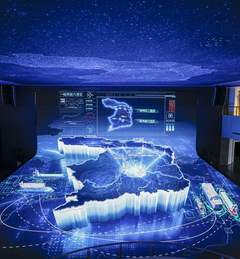 展館以“現代化區域中心城市”為展示主題,以“印象常德、武陵風(fēng)華、邁向未來(lái)”為線(xiàn)索,分為“山水之城 綠色常德”、“魅力之城 文化常德”、“宜居之城 幸福常德”、“活力之城 錦銹常德”、“產(chǎn)業(yè)之城 開(kāi)放常德”五個(gè)篇章,館內在現代高科技手段的支撐下,將全息成像、電子翻書(shū)、幻影成像、歷史場(chǎng)景復原、總規模型、動(dòng)感踩吧、2D、4D影院等現代化聲光電技術(shù)融入各項展示